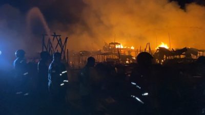 Puluhan rumah di kawasan padat penduduk Jalan Mendawai 1, Kota Palangka Raya, hangus terbakar dalam kebakaran besar yang terjadi pada dini hari tadi
